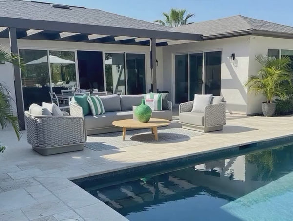 - Sunbrella cushions filled with Quick Dry foam for ultimate comfort and weather resistance.