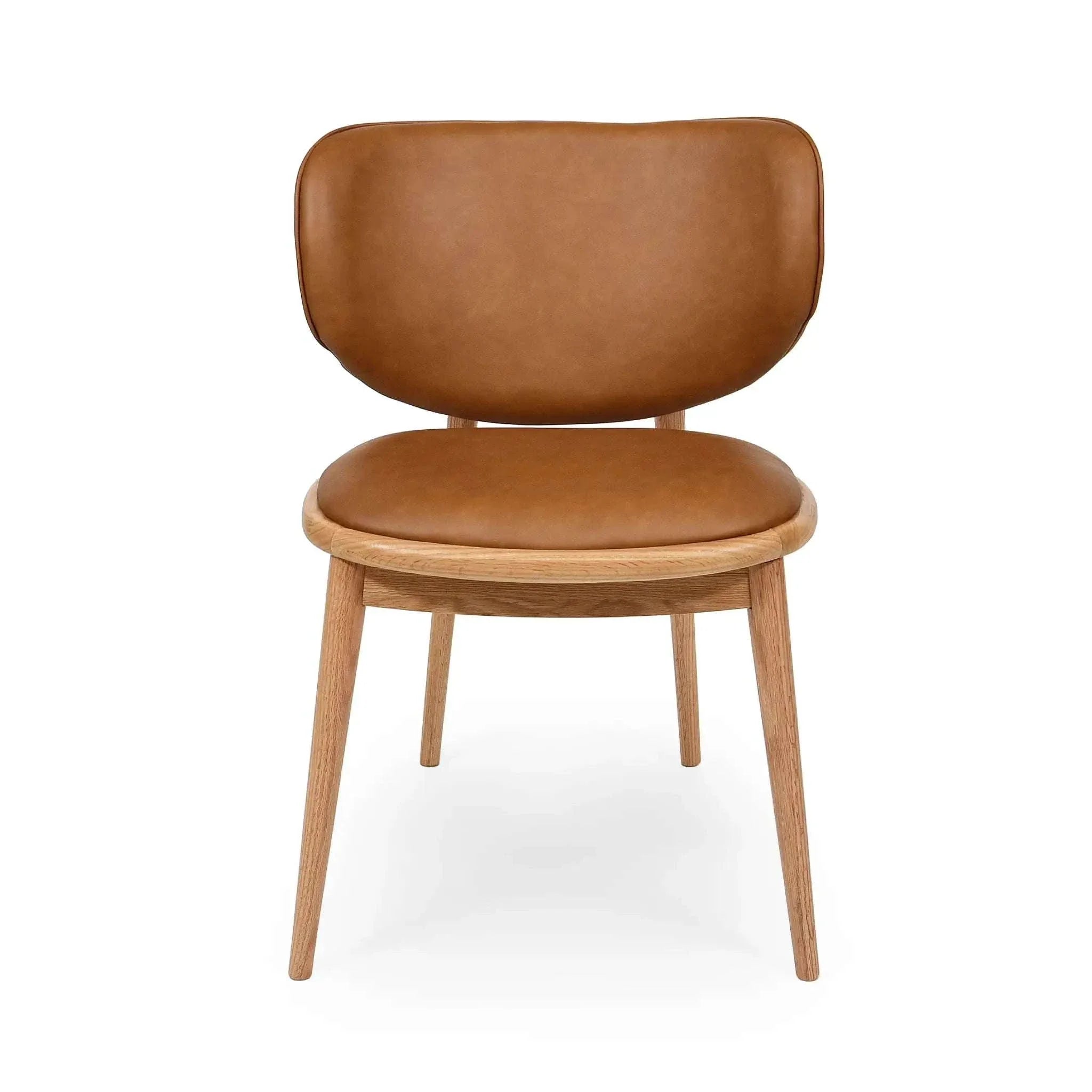 Stocked in luxurious Verona Tan leather with Natural Oak legs, or in a soft Oatmeal fabric with the option of Natural Oak or stained black legs, the Avery Dining Chair offers versatile styling options to suit a variety of aesthetics. Also available à la carte.