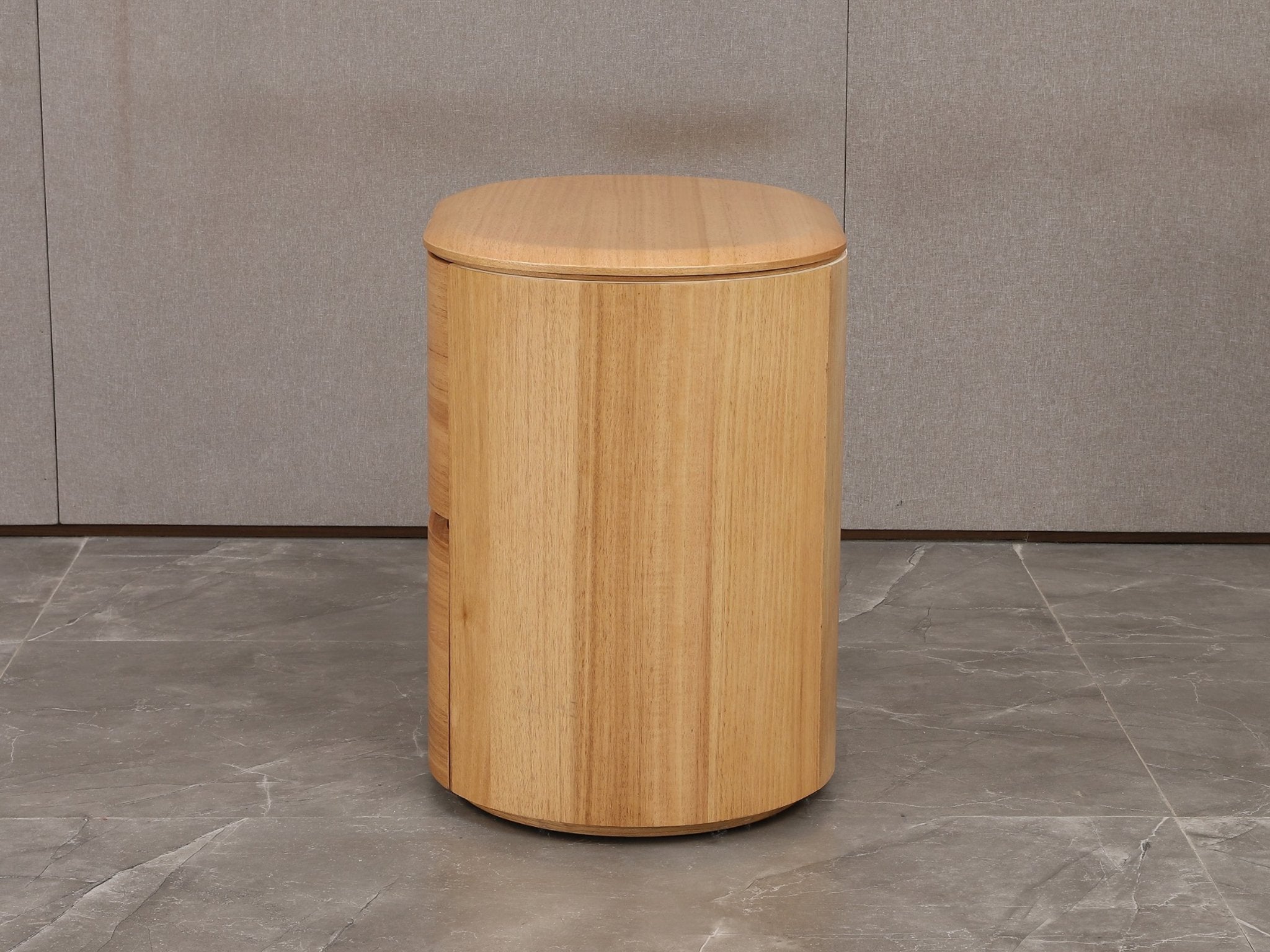 Modern curved bedside storage crafted in beautiful Tasmanian Oak.