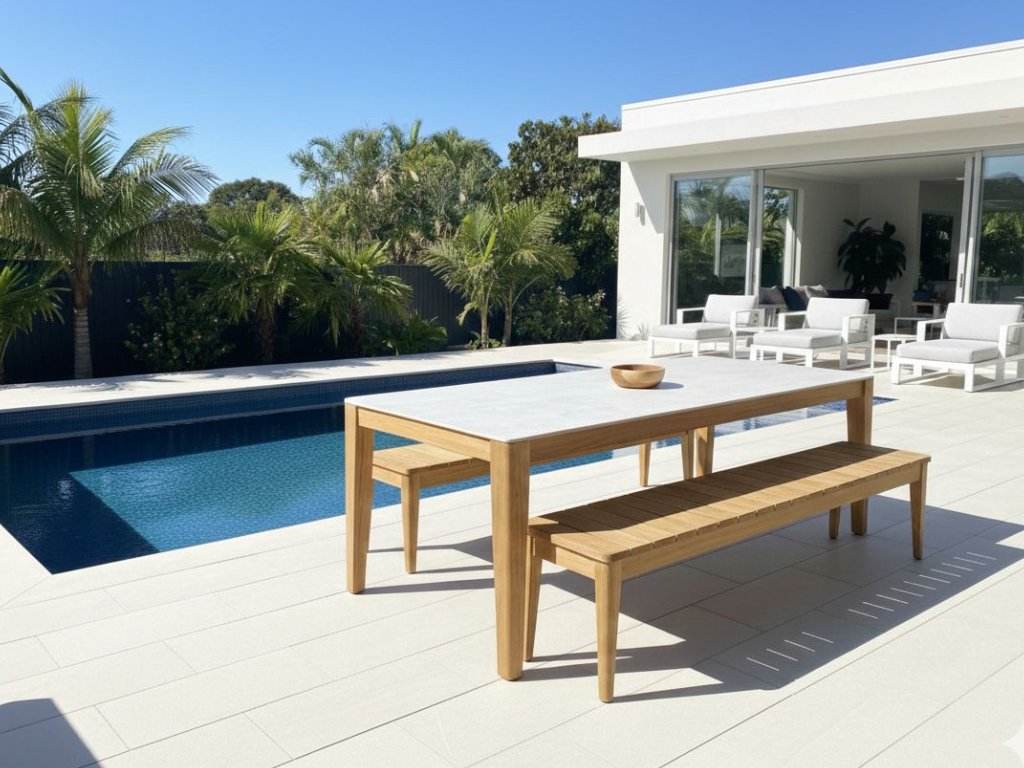 Bring resort-style dining to your home with the Atoll Ceramic Top Teak Dining Table (Indoor/Outdoor). Designed for effortless entertaining, Atoll pairs a refined 12mm ceramic top with the warmth of A-grade teak for a look that’s timeless and elevated. The ceramic surface is smooth and practical for everyday living, while the teak base adds natural character and strength—perfect for long lunches, family dinners, and relaxed outdoor gatherings. With its generous proportions, it comfortably anchors larger settings without feeling heavy, making it a standout centrepiece on a patio, alfresco area, or open-plan dining space. Style it with woven textures, linen neutrals, and coastal accents for an easy, polished finish that suits every season.